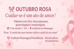 Em alusão à campanha Outubro Rosa, o Instituto Paranaguá Previdência realizará uma palestra voltada às servidoras e seguradas do município, com o objetivo de conscientizar sobre a importância da prevenção e do diagnóstico precoce do câncer de mama — uma das doenças que mais acometem mulheres em todo o mundo.